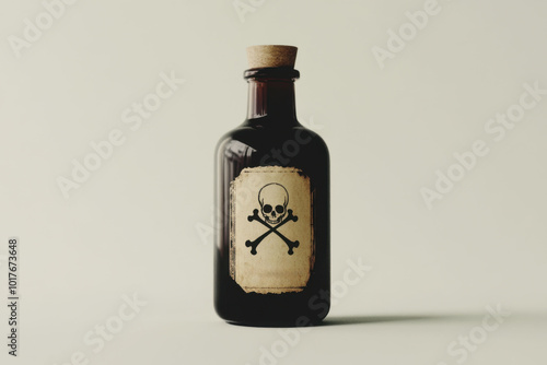 Minimalist composition featuring a vintage poison bottle with skull and crossbones label