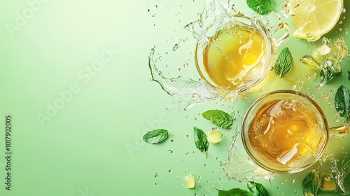 Refreshing Iced Tea with Lemon and Mint Splashes