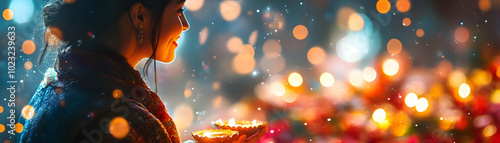Glossy Abstract Digital Art of People Joyfully Decorating Homes with Diwali Lights | Camera Zoom Motion into Bright, Decorative Lights and Happy Faces | Vibrant Background Highlighting the Joy of Diwa