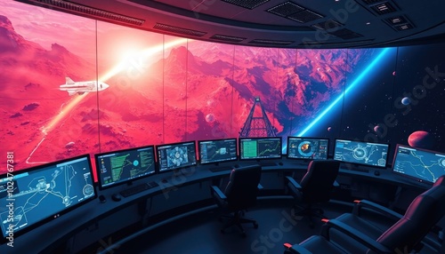 AI-driven space exploration mission control with interactive displays and real-time data, offering a futuristic approach to managing space travel and exploration. AI-generated