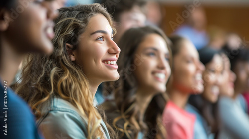 Joyful expressions of youth captured during an engaging event in a lively auditorium full of diverse participants
