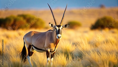 Oryx gemsbok antelope photographed in the wild at a tilted angle from the side