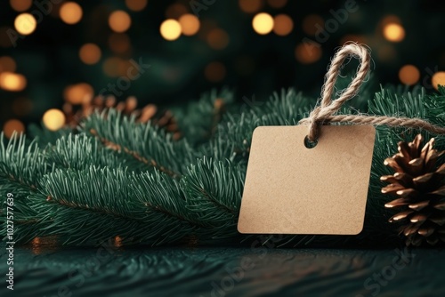 Sparkling Christmas Gift Tag Glowing Under Holiday Lights, Adding Magic and Excitement to Your Presents, Perfect for Festive Decorations
