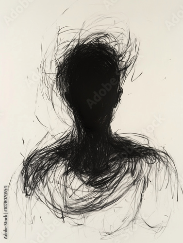 chaotic black ballpoint pen sketch of a man representing stress and grief