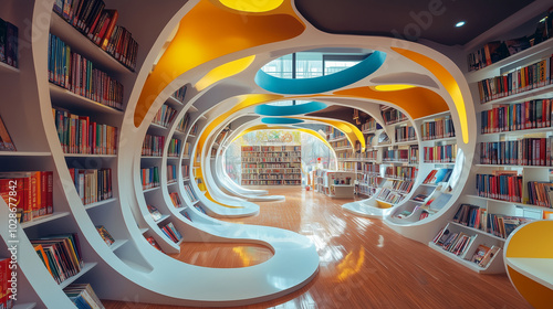 W centrum publicznej biblioteki znajduje się wyjątkowa okrągła półka na książki, która przyciąga wzrok każdego odwiedzającego.