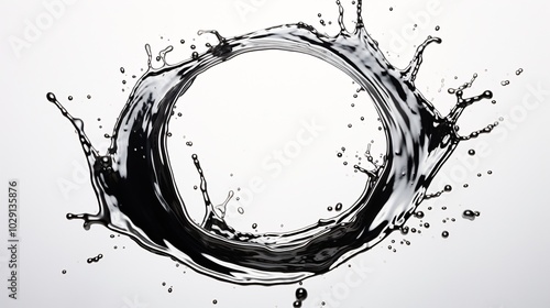 #737028434Black Color Oil Paint Spilling Over on Canvas in Chinese Style Circular Traces Thick Line White Background