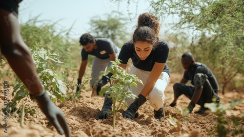 Volunteers from Egypt, Zambia, and Libya helping with wildlife conservation efforts in a rural village, blending tourism with environmental sustainability