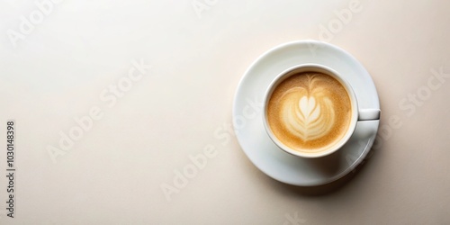 Minimalist coffee cup with creamy texture and shadows shot from a worm's eye view