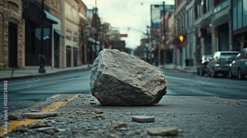 W sercu miasta, na zatłoczonej ulicy, znajduje się ogromny, nierówny kamień, który całkowicie blokuje ruch.