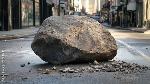 W sercu miasta, na zatłoczonej ulicy, znajduje się ogromny, nierówny kamień, który całkowicie blokuje ruch.