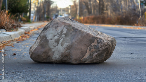W sercu miasta, na zatłoczonej ulicy, znajduje się ogromny, nierówny kamień, który całkowicie blokuje ruch.
