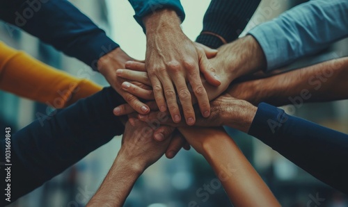 Stack hand of teamwork Corporate Unity and collaboration within the corporate team, reinforcing the idea that success is a collective, Generative AI