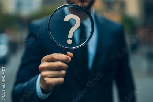 Problem analysis or problem management, analyze or investigate for root cause or incident, finding solution or discover threat or uncertain, businessman with magnifying glass analyze question, Genera