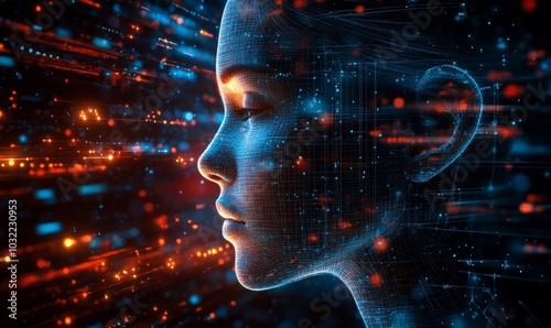 Face of futuristic and Innovative Imagery AI and Automation use of artificial intelligence and automation in business processes, illustrating efficiency and productivity, Generative AI