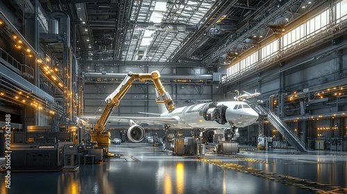 Futuristic Industrial Hangar with Automated Maintenance System