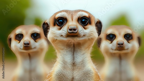 A group of meerkats standing on alert vigilantly watching visitors in the zoo s meerkat exhibit These social curious rodents are native to the deserts and savannas of southern Africa