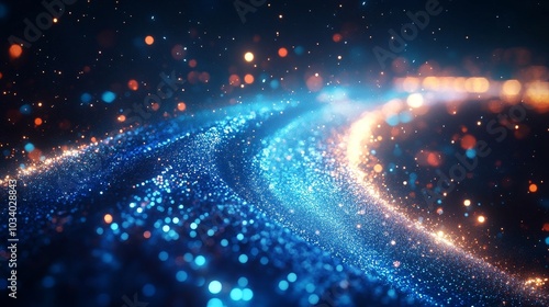 The curved arrow chart with a futuristic feel represents business growth, accompanied by a motion light effect pointing to the upper right corner and a dark blue background