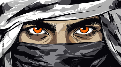 Intense Gaze of a Man in a Headscarf Close up Illustration
