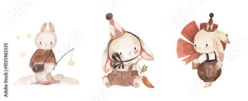Watercolor boho bunny illustration for kids