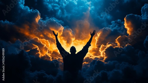 Ethereal figure ascending into clouds, glowing light from above, symbolizing heaven's eternal joy and divine rewards, abstract background, heavenly splendor