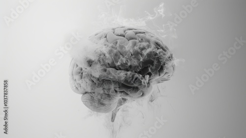 a brain enveloped in fog, representing the mystery and ambiguity of human thought