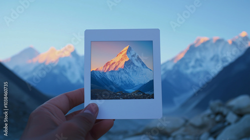 エベレストの日の出を写したポラロイド