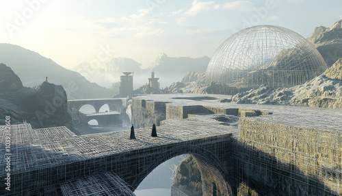 3D wireframe graphics used in the digital reconstruction of a lost civilization.