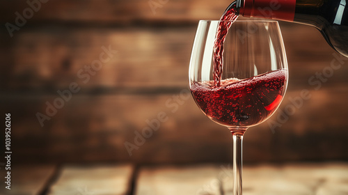 Czerwone wino nalewa się do kieliszka na tle subtelnych kolorów, tworząc harmonijną kompozycję.
