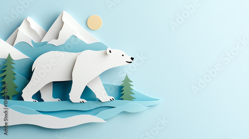 Exploring the majestic polar bear in a serene mountain landscape a whimsical paper art representation