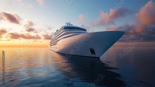 The sleek lines of a luxury cruise ship in the open ocean, representing a modern concept of wealth and status. No people.