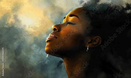young black woman with tears of joy looking heavenward touched by gods grace inspirational
