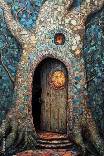 Enchanting doorway in a majestic tree a timeless portal to nature's whimsy and mystery
