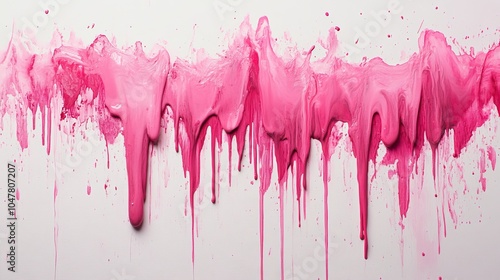 A powerful splash of vivid pink paint dripping across a pure white canvas, capturing the intensity and unpredictability of creative inspiration
