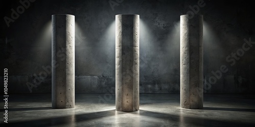 Majestic Concrete Pillars in Spotlight Against Dark Background - Architectural Photography, Dramatic Lighting, Urban Landscape, Textured Surfaces, Monochrome Aesthetic