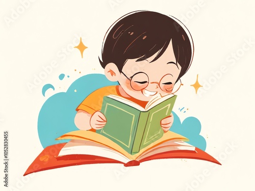 Smiling Boy Reading a Book