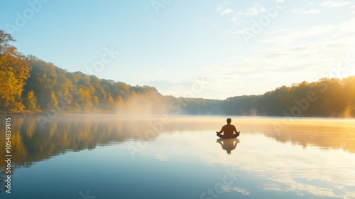 Serene Meditation by Lakeshore at Sunrise, Embracing Natures Tranquility and Harmony
