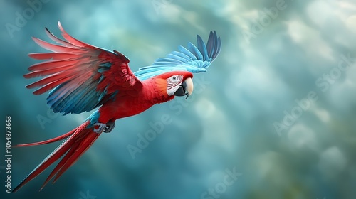 A majestic scarlet macaw in flight captivating beauty of nature's vibrant birds soaring through the sky