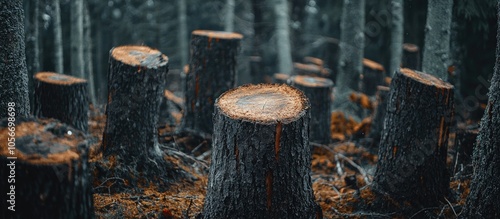 Sawed Off Tree Trunks Due To Bark Beetle Infestation