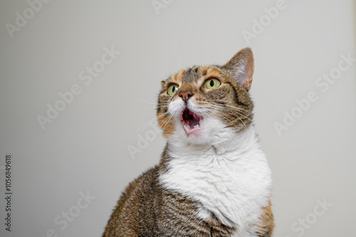 Zszokowany zdziwiony kot z otwartym pyskiem, zabawna mina