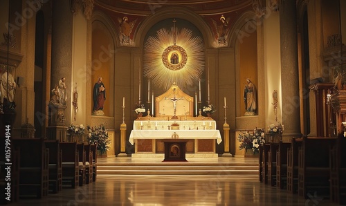 An ostensory used for worship during a Catholic church ceremony specifically for the adoration of the Blessed Sacrament is an integral part of the Eucharistic Holy Hour observed in the Cath