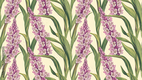 Seamless high resolution pattern featuring Lachenalia mediana Jacq vintage botanical illustration showcasing detailed floral artistry