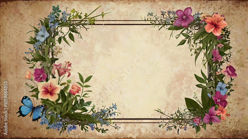 A header in the form of an empty diamond among flowers and plants. Vector illustration. banner for a site, banner for social networks, postcard, greeting