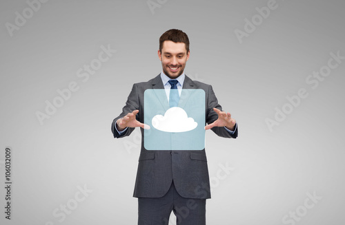 businessman working with cloud icon projection