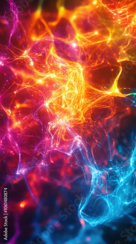vertical image of an abstract AI neural net, glowing and shifting in dynamic colors, suitable for mobile phones