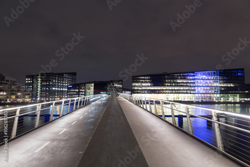 Modern cyclist and pedestrian bridge Bryggybroen in Copenhagen by night