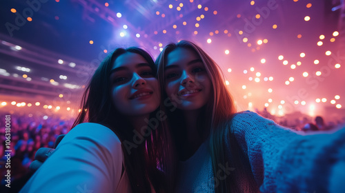 Dwie młode kobiety uwieczniły chwilę podczas koncertu.