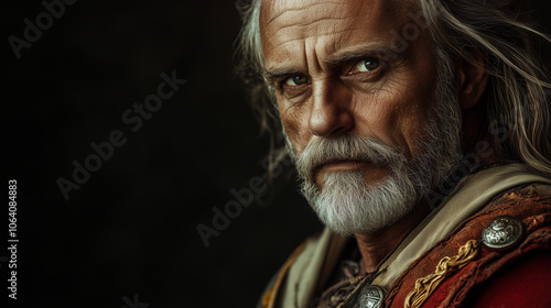 Mężczyzna w stroju Wercyngetoryksa, z długimi, falującymi włosami i zbroją, która emanuje potęgą i siłą które oddają ducha starożytnej Galacji.