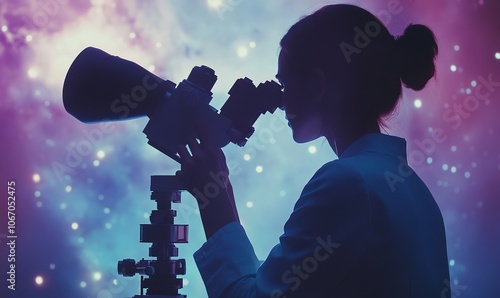 Generate an image of a scientist using advanced telescopes or microscopes to make precise observations of celestial objects or microscopic structures