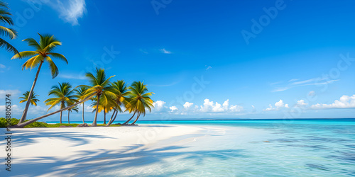 Amazing nature beach palm trees moody sky. Summer vacation travel holiday background. Maldives paradise beach. Luxury travel summer holiday tourism. Sunny coast fantastic pristine sea water. Ai gen