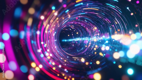 Abstract digital art of a swirling tunnel of light with a bright center and a dark background creating a captivating visual experience.